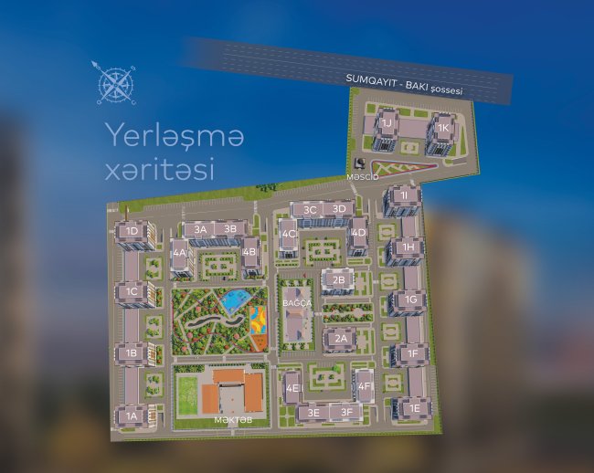 Ərazisindəki ən böyük yaşayış kompleksi olan “Blue City” layihəsində 16 və 14 mərtəbəli olmaqla toplamda 25 yaşayış binası vardır.