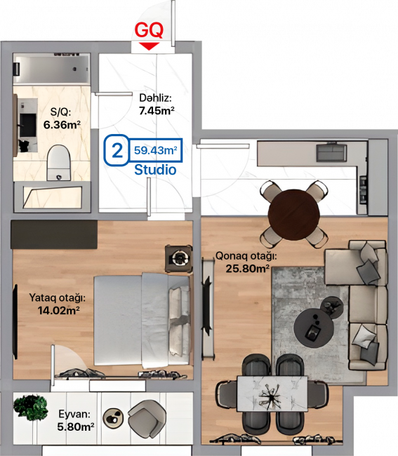 Sahə: 59.43 m2