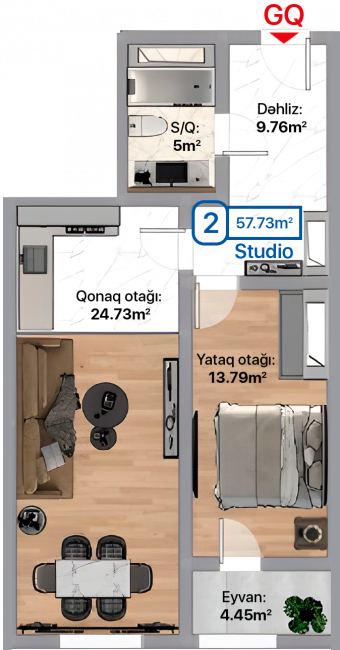Sahə: 57.73 m2
